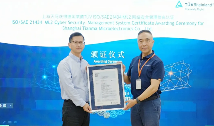 國(guó)際權(quán)威認(rèn)證!天馬獲頒ISO/SAE 21434汽車(chē)網(wǎng)絡(luò)安全管理體系認(rèn)證